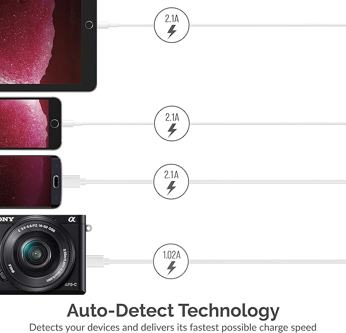 - Smart-port technology maximizes compatibility with Android, Apple, and other devices, enabling charging power up to 12 Amps among 10 ports, or 2.4 Amps per port.