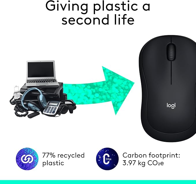 - The plastic parts in M185 include certified post consumer recycled plastic (77% for black and 49% for Charcoal/Grey, Black/Blue Glossy & Black/Red Glossy (6))
