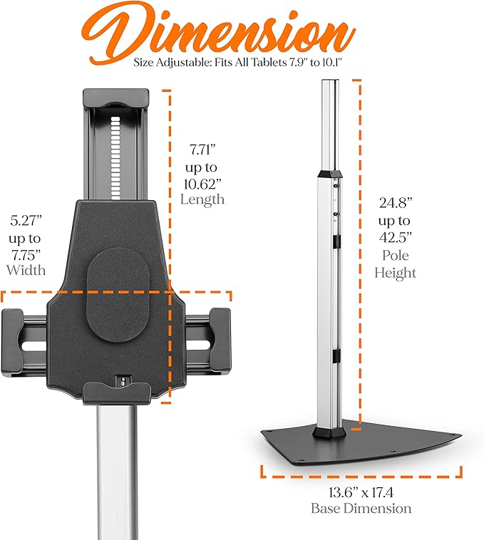 - WORKS W/ IPAD: The aluminum tablet display kiosk works w/ iPad Mini, 1, 2, 3, 4, Air as well as Kindle, Samsung and Android. Fits tablets up to 10.1β. Allows convenient access when installed in high traffic areas like front desks, lobbies or counters