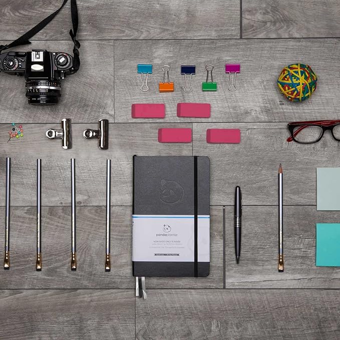 Panda Planner Classic A5 Daily Planner 2026 – Undated Quarterly & Productivity Planner with Hourly Schedule, To Do List, Daily Journal, Goal Planner, Habit Tracker & Gratitude Organizer – Black