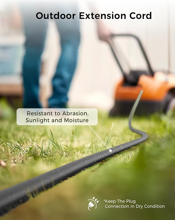 - Indoor & Outdoor Extension Cord: This extension cord is versatile, perfect for both indoor and outdoor use. Ideal for powering outdoor lighting, garden tools, or patio appliances, as well as indoor electronics and appliances.