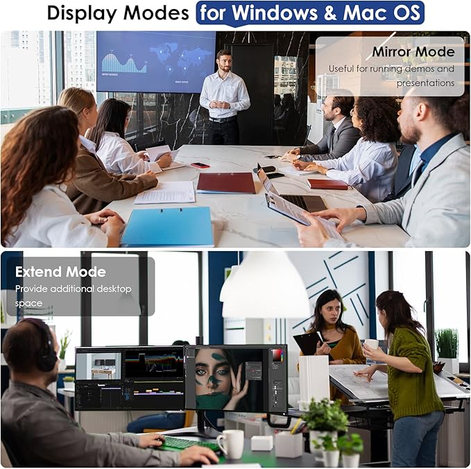 - Versatile Compatibility: Compatible with Windows11, 10, 8, 8.1, 7, MacOS 10.14-13.X and latest, Ubuntu 20.04, 22.04, ChromeOS, Android 5 (Lollipop) onwards with USB OTG mode. Plug and play driver installation via Windows Update. This universal docking station offers broad compatibility with various laptops and devices, making it an ideal choice for remote work, presentations, and more.