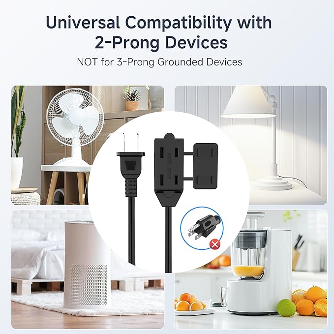 - Universal 2-Prong Compatibility: This white extension cord is compatible with most 2-prong cords on small appliances and consumer electronics. This long power extension cord includes a lifetime warranty for lasting value.