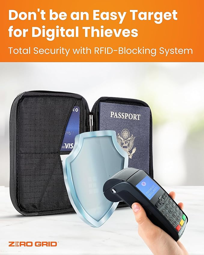 - Travel with Confidence - Keep your sensitive data safe while traveling. Built with advanced RFID-blocking technology, this passport wallet helps protect your cards and passport from unauthorized scans. Stay secure wherever you go.