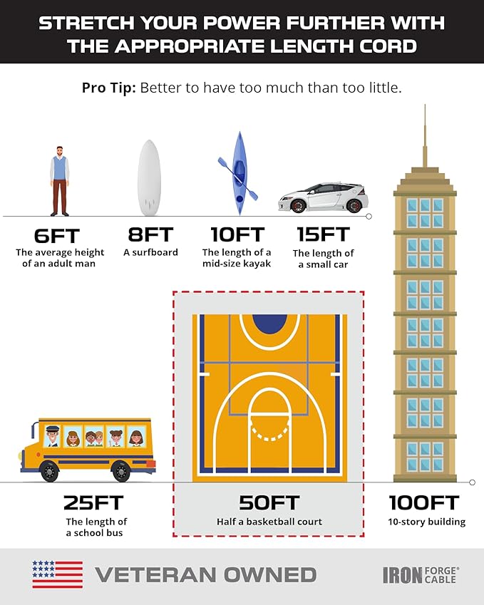 - Integrity in Service: Iron Forge Cable, a U.S. veteran-owned business, stands behind its heavy duty extension cord 50 ft. We're here to help resolve any issues that you may have.