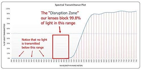 - TECHNICAL SPECS - Tested to block 99.9+% of light from 280 - 510nm (this includes UV). The wavelengths between 450 - 510nm are the most disruptive wavelength of light at night. It is also the same frequency of light that is blasted directly into your eyeballs from electronic devices! Always wear protection!