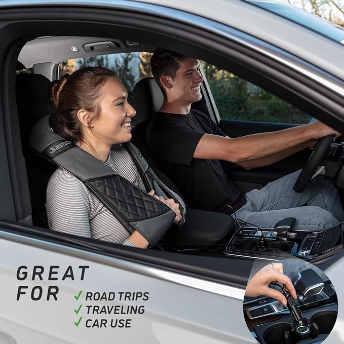 - ENJOY A DEEP MASSAGE EVEN ON THE GO: One of the greatest things about this shiatsu massager is its portable nature. Enjoy a rejuvenating massage even on the go with our massager pillow that include a regular adapter plus a car adapter. Great for road trips, traveling, camping, car use, the office and more. It comes in a wonderful leather pouch for hassle free carrying and storage