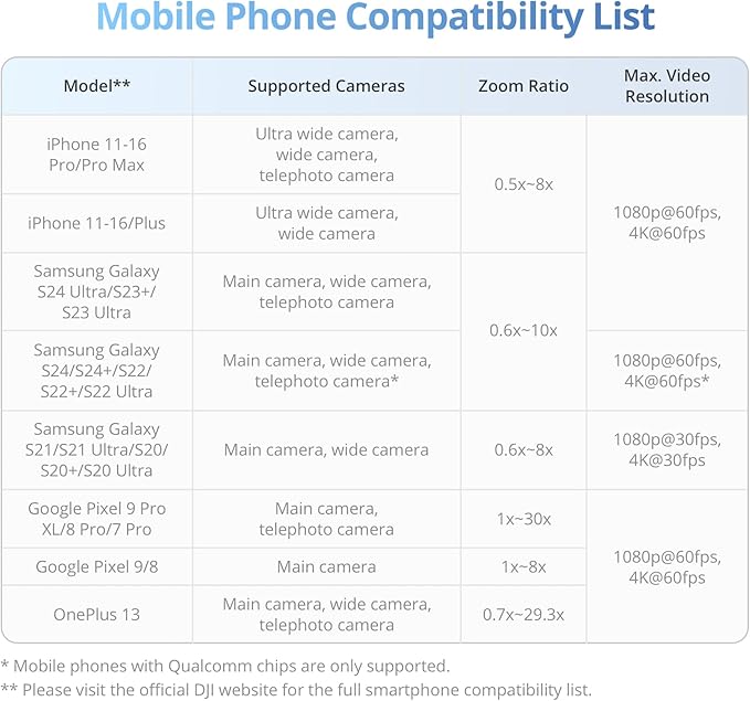 - Streamline Your Creativity - The Osmo Mobile 7 phone gimbal features an integrated foldable design with a built-in tripod [5], making solo creation effortless and storage hassle-free.