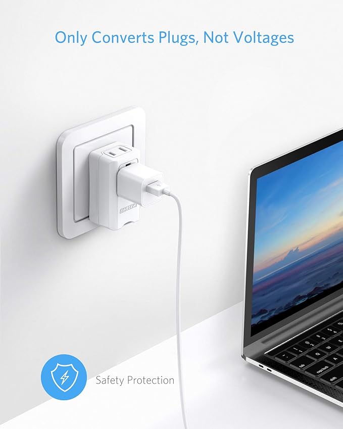- BESTEK plug converter: This universal converter for travel contains 4 country plugs, convert UK/EU/AU standard outlets to US standard outlet world travel adapter.