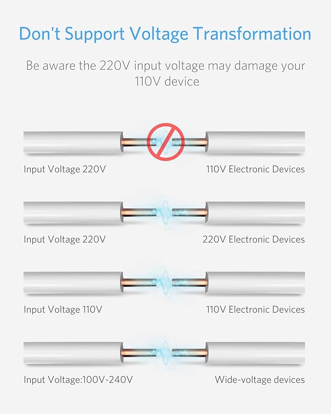 - Wide input voltage travel adapter: Dual 100~250V input, 50/60Hz, 10Amps Max. Max power 1250W at 125V voltage and 2500W at 250V voltage, please be careful when using high-power appliances such as hair dryer and flat iron. (Note: this adapter canβt convert voltage)