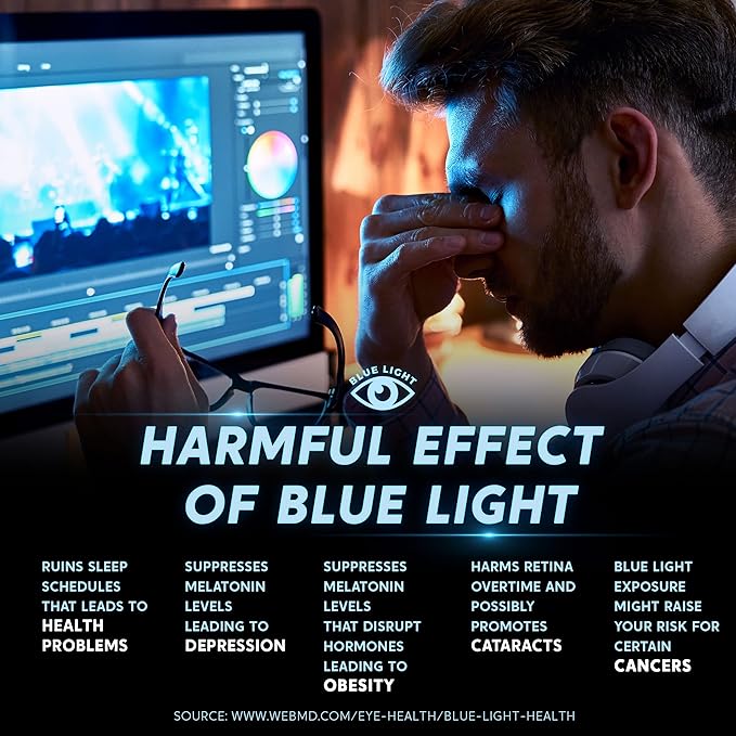 - PROTECT YOUR EYES AND LIVE HEALTHIER- With the heavy use of digital devices all day long, people are subjecting their eyes to Blue Light and UV light in amounts they never did before. Most people have 7.4 hours of daily screen time. Experts have linked the blue light portion of the light spectrum to insomnia and eye conditions like macular degeneration and cataracts. Blue light suppresses our body's release of melatonin, which helps regulate our sleep cycles.