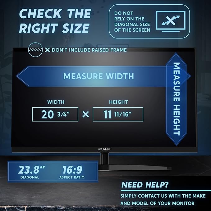 - PRODUCT DIMENSIONS: LENGTH 20 3/4" (528mm), HEIGHT 11 11/16" (297mm), DIAGONAL 23 6/7" (606mm). Akamai Blackout Privacy Screen Filter is engineered to be compatible with HP, Dell, Samsung, Lenovo, LG, Acer, ASUS, ViewSonic, and other monitor brands. Please verify your computer screen's width and height measurements before ordering. It's not recommended to make your selection based solely on your computer screen's diagonal size.