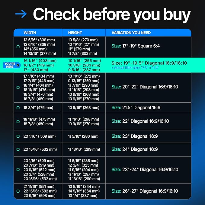 Universal Acrylic 19, 19.5 Inch Computer Privacy Screen Filter for Widescreen Computer Monitors - 17.3" x 11.4" (440 x 290mm) - Monitor Frame Hanging Type
