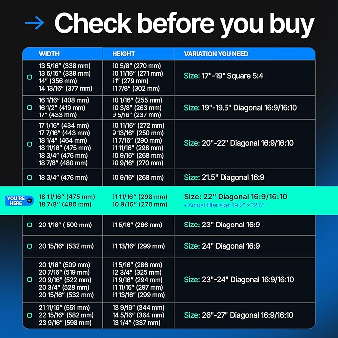 Acrylic 22 Inch Computer Privacy Screen Filter for Widescreen Computer Monitors - 19.3" x 12.5" (490 x 317mm) - Monitor Frame Hanging Type