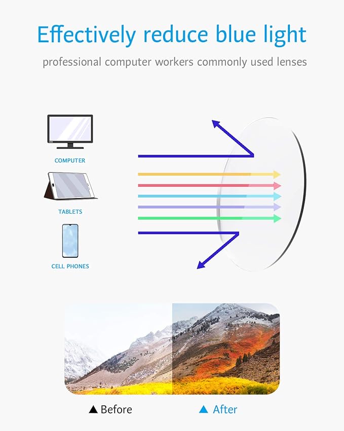 - ANTI BLUE LIGHT - Cut 90% of the blue light. Relieving eye fatigue, dry and vision falling.