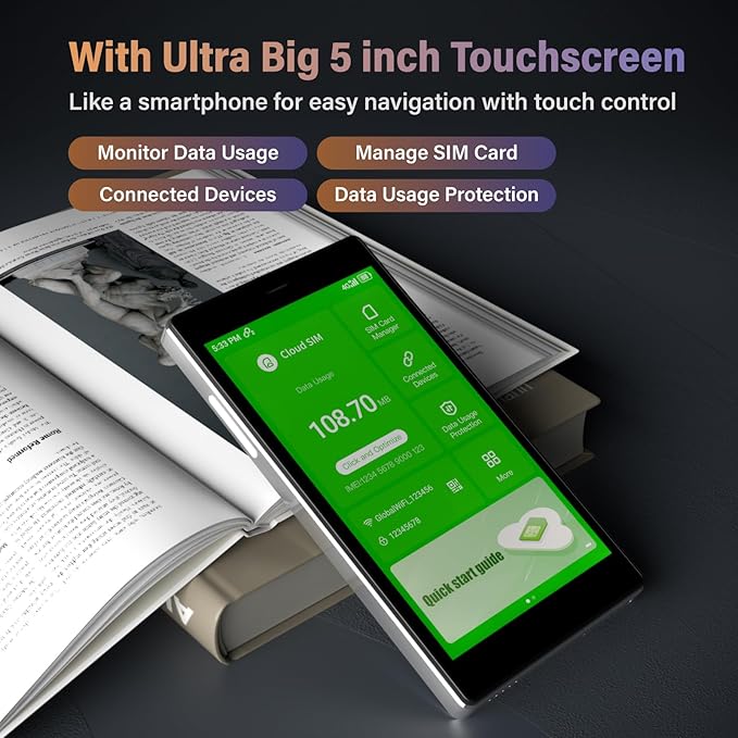 - 【Large HD Screen, Visual Interface and User Friendly App】Equipped with 5.0" HD screen and pre-installed Apps, this 4G LTE hotspot wifi provides the best user experiences including the data usage viewing, SIM card management, connected devices management, data protection and etc. Pre-installed Apps include Map, Translator, Currency Calculator. These all-practical Apps offer the best trip needs. Powered by a 3900 mAh battery, this WiFi device guarantees up to 10 hours of uninterrupted connectivity and can also be used as a power bank to charge your other devices while on the move.