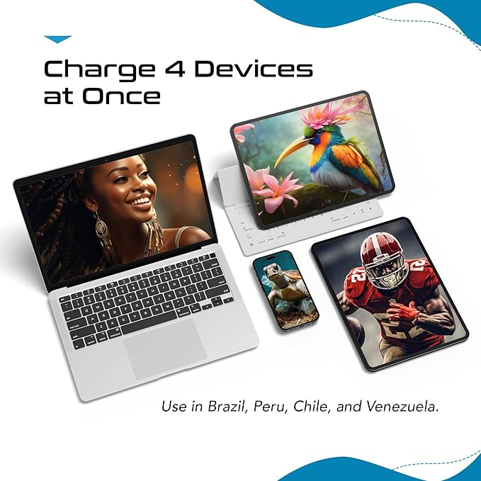 - [Charge 4 devices at once] 2 USA input 1x USB & 1x USB-C (total max 3 1a) perfect for charging cell phone camera laptop Tablets iPads iPhones Kindle chargers CPAP and power bank & more