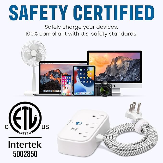 - π³οΈ USB & USB-C COMPATIBLE: No adapter neededβfits all iPhone, iPad, Android, Samsung, and any USB and USB-C power cords. This Power Strip USB extension cord ensures you're always connected.