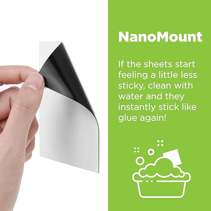 - The NanoMount backing is seriously amazing. If the sheets start feeling a little less sticky, just run a little water over the back and they instantly stick like glue again!