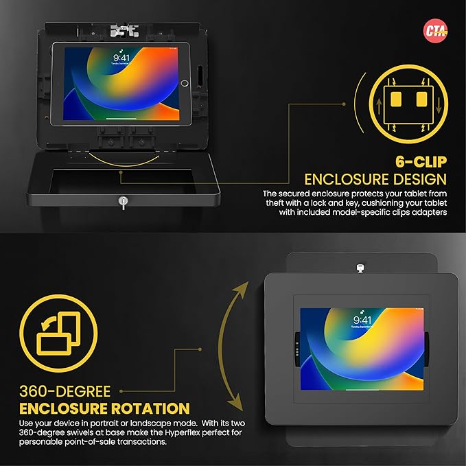 Locking iPad Wall Mount - CTA Anti-Theft Small Locking Tablet Enclosure w/ Key Lock & Interior Cable Routing for iPad Mini 1, 2, 3, 4, 5, 6, Samsung Tab A 8″, Lenovo Tab E8 - Black - (PAD-PSWB)