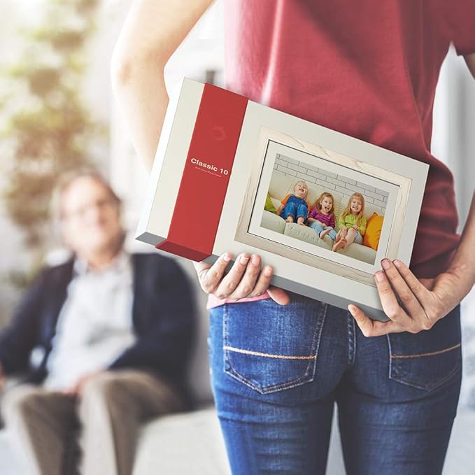 - 𝐈𝐍𝐒𝐓𝐀𝐍𝐓 𝐖𝐈𝐑𝐄𝐋𝐄𝐒𝐒 𝐒𝐇𝐀𝐑𝐈𝐍𝐆: Other than traditional digital photo frame, Classic 10 can instantly receive photos and videos via Wi-Fi network (NOTE: Only works with 2.4 GHz). You, your families and friends can share the moments to the frame with multi convenient methods, such as phone App, sending email.
