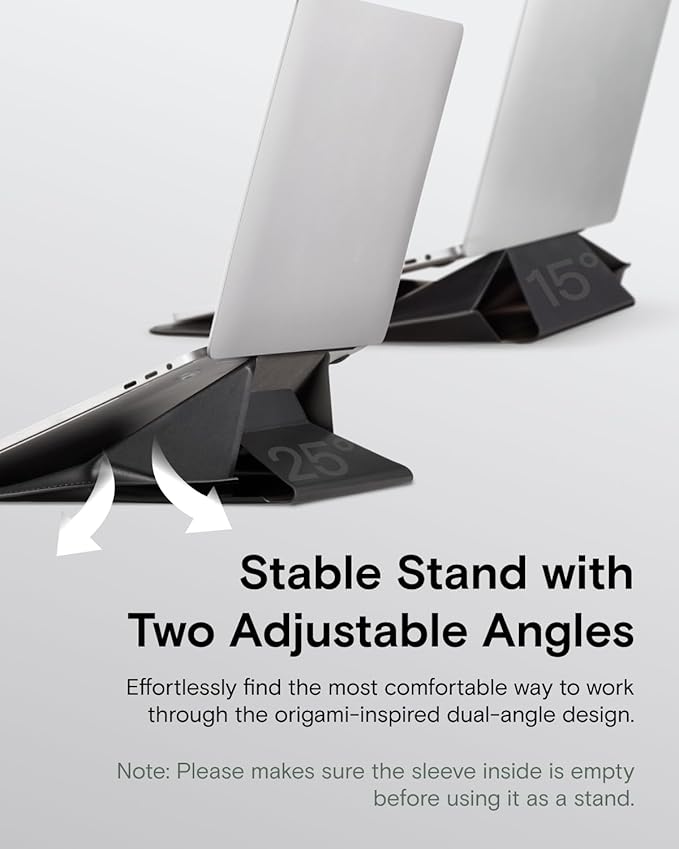 - Two Angles Laptop Sleeve Stand: Instantly convert this sleek Laptop Sleeve into a sturdy Laptop Stand. Features dual-angle adjustment (15° for typing; 25° for viewing) to elevate your screen, reducing neck/wrist strain from poor posture. More than a protective Laptop Bag, this ergonomic Computer Bag works anywhere – transforming your carry sleeve into a pain-relieving workstation.