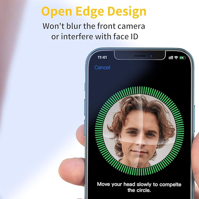 - 💯【USER-FRIENDLY DESIGN】 The open edge design does not in any way disrupt images of the front camera and as a result does NOT interfere with Face ID. The iPhone 12 Pro Max tempered glass is designed to be a little smaller than the actual screen, providing just the right fit and compatibility for your phone cases.
