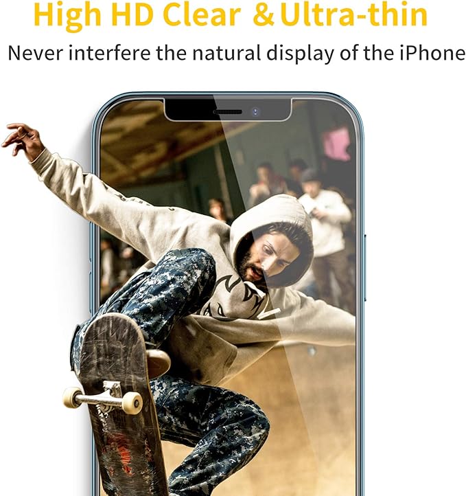- 💧【BUBBLE-FREE & ANTI-FINGERPRINT】 The iPhone 12 Pro Max tempered glass screen protector will self-expel air bubble when automatically bonding with the screen. Coated with hydrophobic and oleophobic clear layers on the glass protector can against oil residue from fingerprints from long-term use.