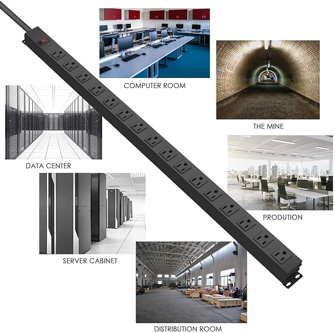 - Wide Spaced Power Strip: 16 wide spaced outlets, the center-to-center distance between AC outlets is about 1.69inch(4.3cm), which is very suitable for large plugs. Connect with 6 ft 14AWG power cord. This long power strip Rating: 15A, 125V, 60Hz, 1875W.