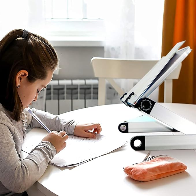 - 【Ergonomic Relax Body Book Stand】 Adjustable Book Stand designed with multi different adjustable angles and heights allow promoting proper posture for better spinal health, every 15°is a gear adjustment, adjust the height and angle according to your needs by pressing the button on the lightweight metal frame. Ergonomic cookbook holder eliminates eyes, neck, back and shoulder fatigue or pain meanwhile increasing your concentration and reading hours improve learning efficiency.
