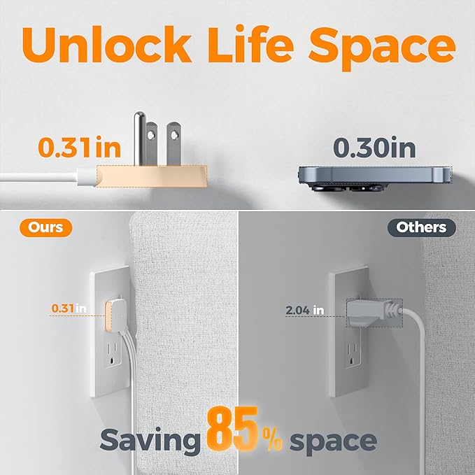 - Mountable Wall Outlet Extender: Featuring 2 wall mount holes for easy space management, this flat power strip offers versatile installation options on workbenches, walls, under counters, etc; 4 rubber feet keep it securely in place, preventing slips and slides