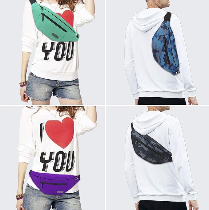 - ▶ Changeable Style Fanny Pack,Many Ways to Wear — Since the comfortable long strap is widely adjustable for most waist size(20” - 50”).There are many ways to wear this fanny pack - You can wear it in front of your waist, back on your hip, slant across your chest or over You shoulder.Perfect for various occasions.