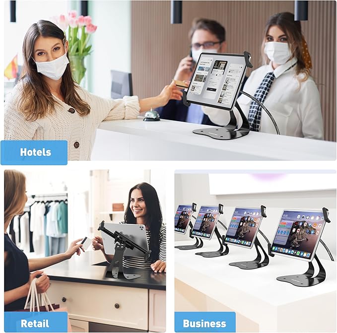 - Versatile Applications: Ideal for locking tablet mount in classrooms, retail, restaurants, and businesses, this iPad locking stand ensures security in public spaces. Its reinforced locking mechanism prevents unauthorized removal while maintaining a sleek, professional look.