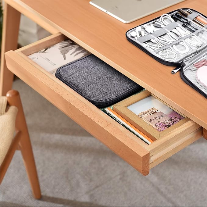 - ADEQUATE STORAGE-The digital bag provides 1 inner mesh pocket with zipper for your portable hard drive,5 mesh pockets with elastic loops for USB cables,earphones,etc,8 elastic loops for slender cables,earphones or pens to prevent cables from getting enttangled.In a word,this bag can store your electronic accessories,pens,jewelry or makeup.