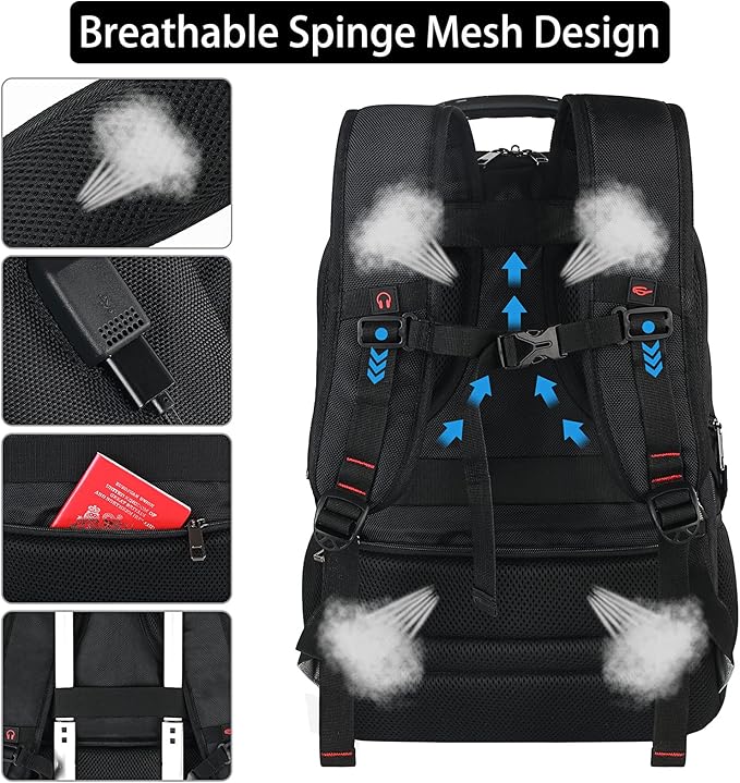 - TSA FRIENDLY & LUGGAGE STRAP : At checkpoint, unfolds the backpack freely 180 degrees making you quickly through the airport security, exclusive designed for airplane traveling. You can attach the backpack to the trolley case of the luggage strap. Unleash the pressure on your shoulders and make your journey easier. Served as durable large backpack, large laptop bag or spacious college backpack for students, you can use it for Airplane Travel, Vacation, Day hikes, Camping, Business Etc.