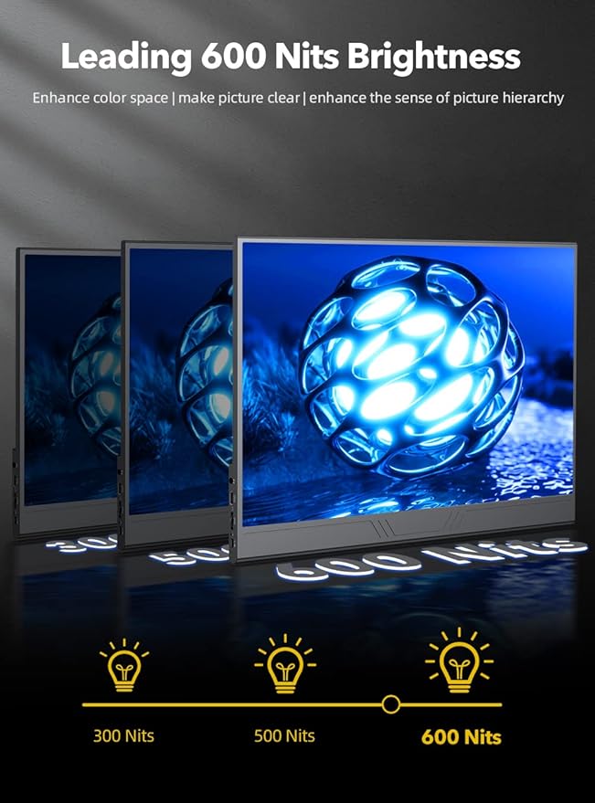 - 3 Sided Border-less & Lightweight: Frame-less bezel only 0.15’’ in thickness, Slim at 0.15" and weighing 1.5 lbs, easy to carry and helps you be productive on the go or connect your gaming device to play anytime, anywhere; 3-side ultra-narrow bezel design brings you an immersive visual experience(Attention: External power supply is required)