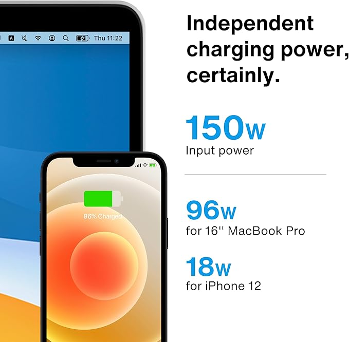 - 【Full Speed Charging】This dock features a 150W power adapter, enabling it to efficiently charge laptops up to 96W and PD USB-C devices up to 18W