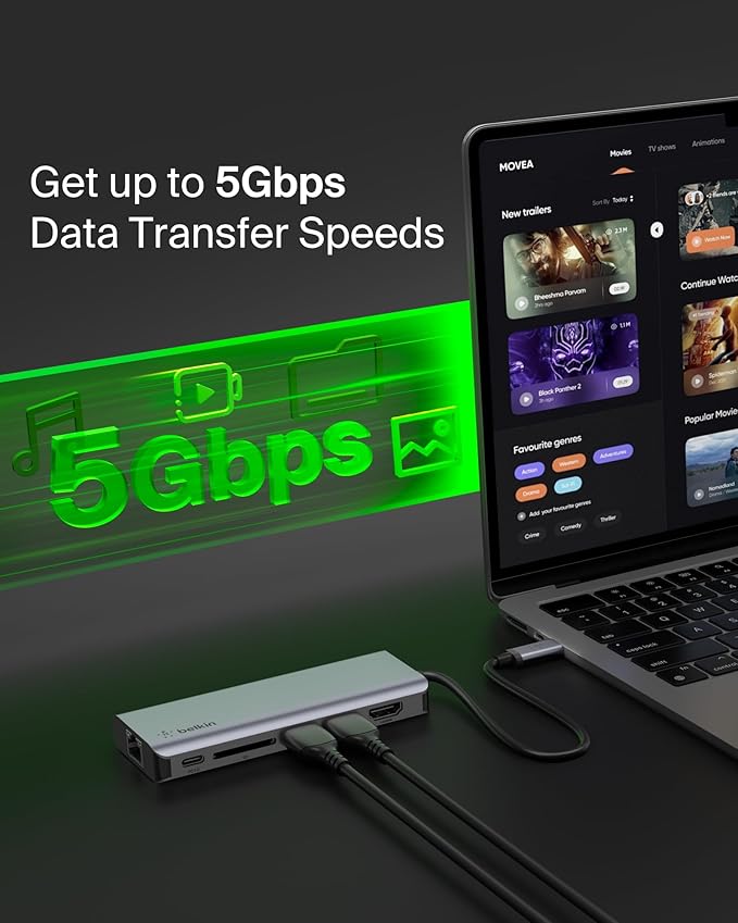 - 6-IN-1 USB-C HUB : This multifunctional Belkin hub accounts for all your connection needs, built for fast and convenient connectivity with 6 ports, including 2x USB-A, an HDMI, Ethernet, SD card reader, and USB-C port, to get the most out of your laptop's USB-C port