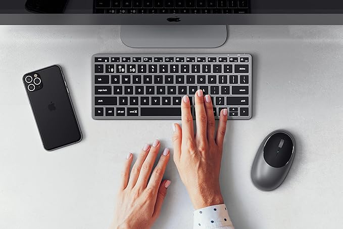 Satechi Slim X1 Bluetooth Backlit Keyboard for Mac, Illuminated Keys & Multi-Device Sync, for MacBook Air/Pro M4, iPad Air/Pro M4/M3, iPad mini, Mac mini, iMac - Space Gray