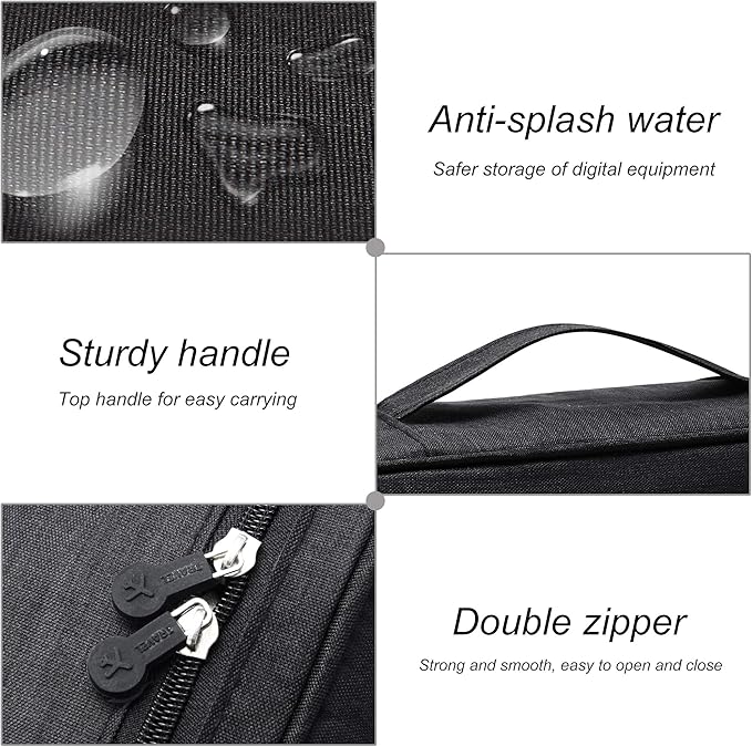- WATERPROOF & SHOCK RESISTANT: The cable travel organizer bag is made of waterproof cation 300D fabric, thick padded inner material offer excellent protection for your electronic accessories from scratches, dust and accidental dropping, all the things inside are protected very well.