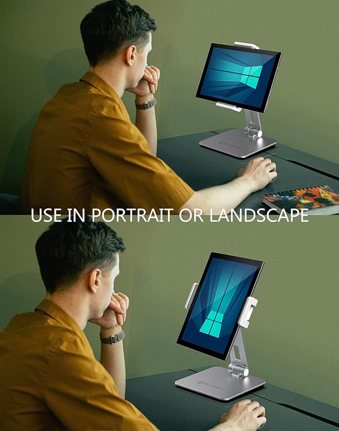 - 【Wider Compatibility】 This Foldable desktop tablet stand holder is compatible with 4.7''-13'' screen cellphones and tablets, Such as such as new 2020 iPad Pro 11 / 12.9, iPad Air 4, 2018 iPad Pro 9.7 / 10.5, iPad Air mini, Microsoft Surface Pro series, Kindle Paper white, Fire HD 7 8 10, E-reader, Samsung Galaxy Tab series and more.
