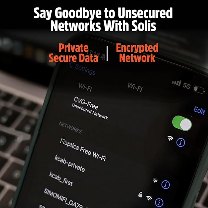 - Easy to Use: Simply download the Solis app and register your device; start using your Lifetime Data plan or add an additional WiFi option to safely and privately connect to available signals
