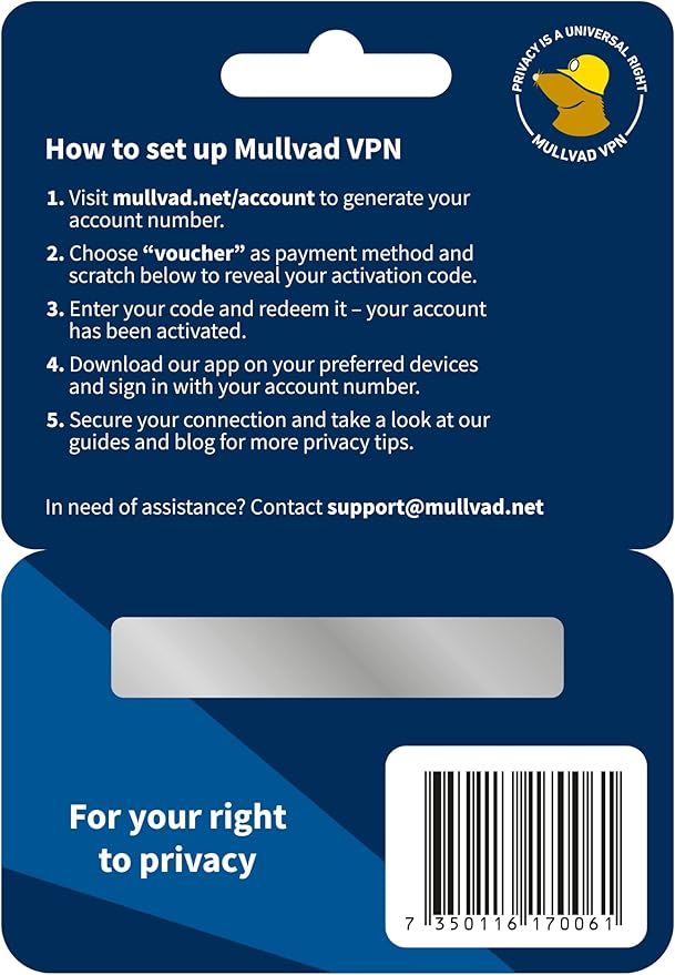 - Mullvad VPN: If you are looking to improve your privacy on the internet with a VPN, this 6-month activation code gives you flexibility without locking you into a long-term plan. At Mullvad, we believe that you have a right to privacy and developed our VPN service with that in mind.
