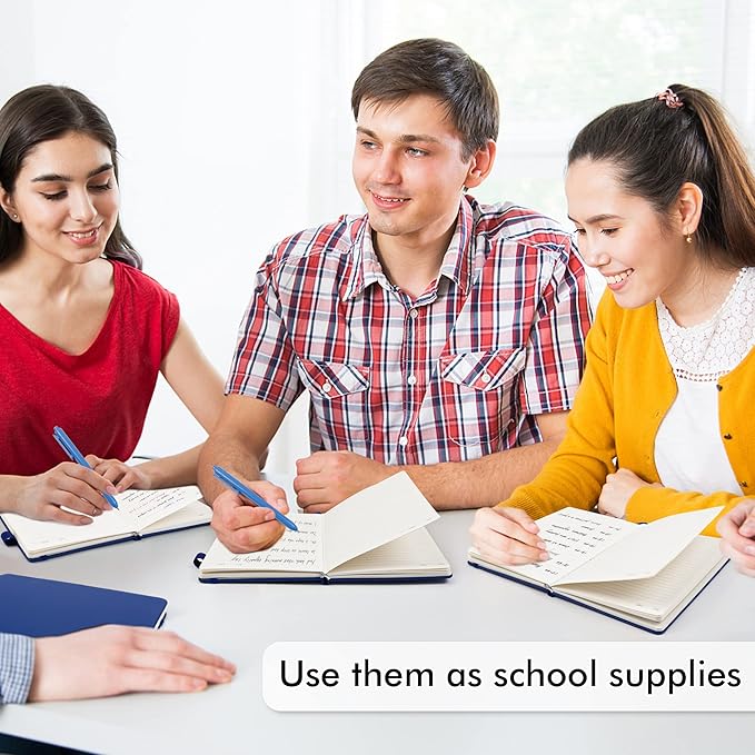 - Feela 24 Pack Classic Ruled Notebooks contains 24 classic navy ruled sturdy cover notebooks and 24 Black Retractable Pens. Each of the notebooks measures 8.3” x 5.1”, which is perfect to carry and easily held by young girls and boys. These black cute pens are customized to be placed in the pen holder, which is pretty convenient.