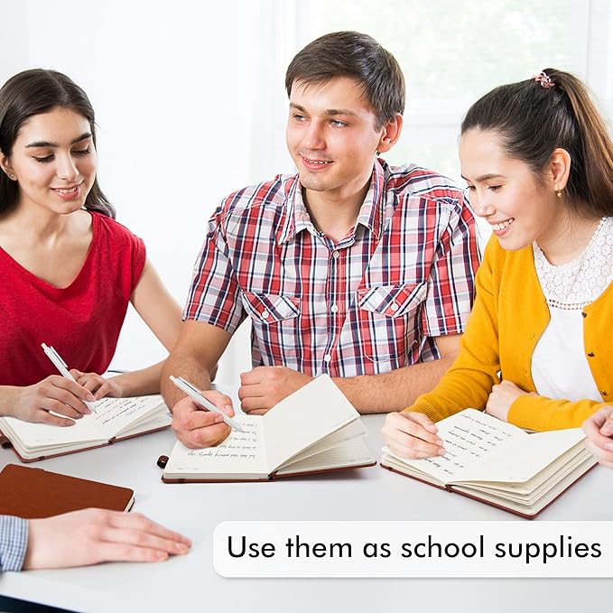 - Feela 12 Pack Classic Ruled Notebooks contains 12 classic brown ruled sturdy cover notebooks and 12 Black Retractable Pens. Each of the notebooks measures 8.3” x 5.1”, which is perfect to carry and easily held by young girls and boys. These black cute pens are customized to be placed in the pen holder, which is pretty convenient.