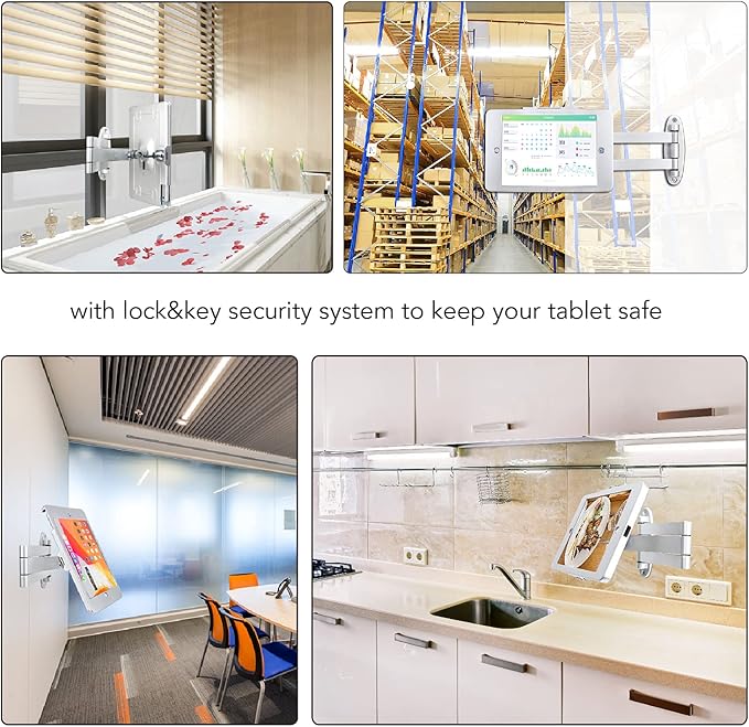 - Easy Mounting and Installation : tablet holder is easy to install on any wall and comes with mounting hardware included. Heavy-duty aluminum bracket and metal base ensure durability and wobble-free mounting of your device. Protective pad on the bracket cushion your device.