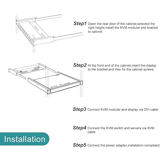 - This all-in-one kvm has been installed before delivery. You just need to place the KVM directly into 1U rackmount and tighten the screws. This KVM console is upgraded with alumium for less wight, and the draw shell is made by steel for sturdy.