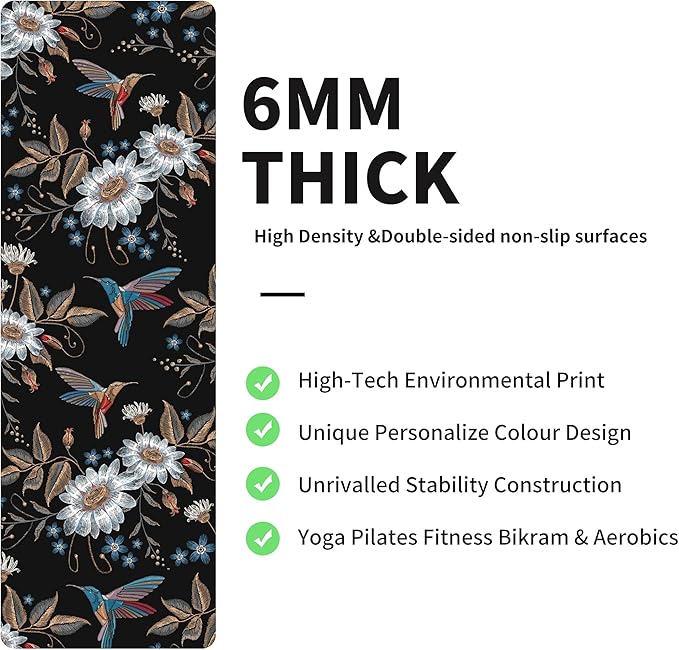 nuveti Yoga Mat Print Extra Thick TPE Non Slip Fitness Exercise Mat with Carrying Bag,72"x24" Extra Thick 6MM Exercise & Workout Mat for Yoga, Pilates Fitness and Floor Exercises