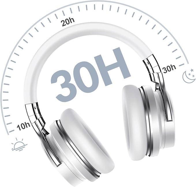 Silensys E7 Active Noise Cancelling Headphones Bluetooth Headphones with Microphone Deep Bass Wireless Headphones Over Ear, Comfortable Protein Earpads, 30 Hours Playtime for Travel/Work, White