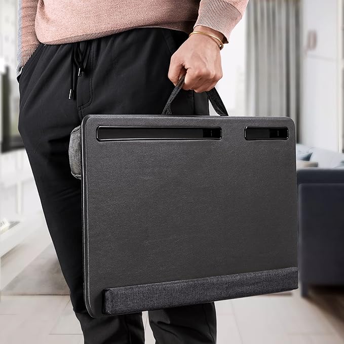 - ✓ MULTIFUNCTIONAL LAP DESK - Works perfect for laptop computers, tablets, smartphones, etc. This laptop desk provides you with extra space and protection while lying on your bed or sofa.